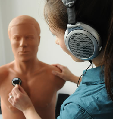 Wesentlich zum barrierefreien Besuch von Medizinvorlesungen tragen elektronische Stethoskope bei. Um den elektronisch verstärkten Schall wahrzunehmen, verbindet der Nutzer das Hörgerät oder Cochlea-Implantat per Audio-Kabel oder Bluetooth-Funkverbindung mit dem Instrument.